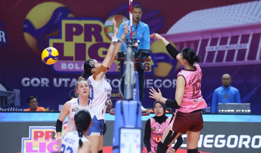 Gresik Phonska Plus mengakhiri perlawanan bjb Tandamata dengan skor mencolok 25-16 pada set ketiga.