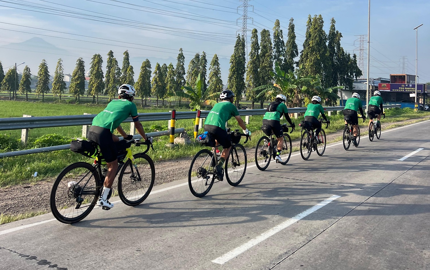 Azrul tak sendirian, ia gowes bersama Ivo Ananda istrinya dan sejumlah cyclist dari Azrul Ananda School of Suffering (AASoS). Mereka gowes sejak Kamis (9/4/2026) pagi hingga Sabtu (11/4/2026).