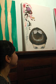 -DEWI ASTHARI menatap satu diantara karyanya.