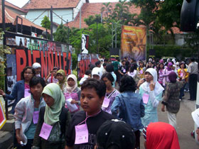 Menggembirakan. Sekurangnya 450 siswa SMP yang berasal dari Gresik dan Surabaya, Senin (17/12) mengapresiasi Biennale Jatim II tahun 2007 yang digelar di Taman Budaya Jawa Timur (TBJ). Kehadiran mereka memberikan nuansa baru dalam penyelenggaraan pameran seni.