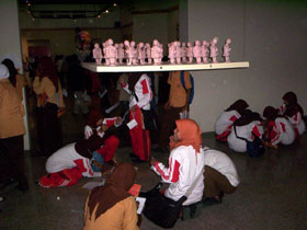 “Dari pihak sekolah, kabarnya juga mewajibkan anak-anak ini untuk membuat laporan setelah mereka menyaksikan Biennale Jatim II. Ini sesuatu yang menggembirakan, sekaligus memberikan nuansa baru pada pameran seni,” terang AGUS KUCINK satu diantara panitia BJ II kepada suarasurabaya.net.