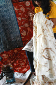 “Saya memang suka dengan seni dan tradisi Jawa. Seperti tari-tarian, termasuk membatik juga. Dulu jaman kuliah pernah ikut kursus di Jogya tapi cuma sehari. Sekarang ikut lagi, kepengen lebih memperdalam,” ujar TRIASTUTI ANGGORO warga Kertajaya Indah, satu diantara peserta workshop membatik, Selasa (07/08).