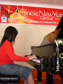 Beragam komposisi musik disajikan secara atraktif oleh 16 siswa Wisma Musik Galaxy (WMG) dalam Chinese New Year Carnival 2007 di Colloseum Club House Wisata Bukit Mas, Minggu (11/02).