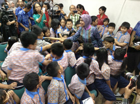 Kehadiran anak-anak SD ke Gedung DPR, ini disambut oleh Nurhayati Ali Assegaf anggota DPR dari Fraksi Partai Demokrat.