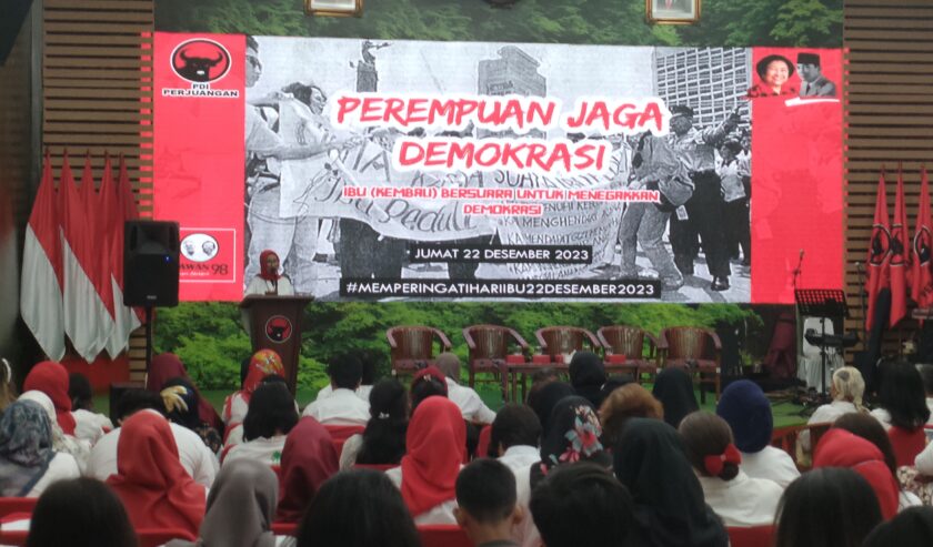 DPP PDI Perjuangan (PDIP) bersama organ sukarelawan Kawan Ganjar-Mahfud 98 menggelar talk show dengan tema “Perempuan Jaga Demokrasi: Ibu (Kembali) Bersuara Tegakkan Demokrasi” pada Jumat (22/12/2023).