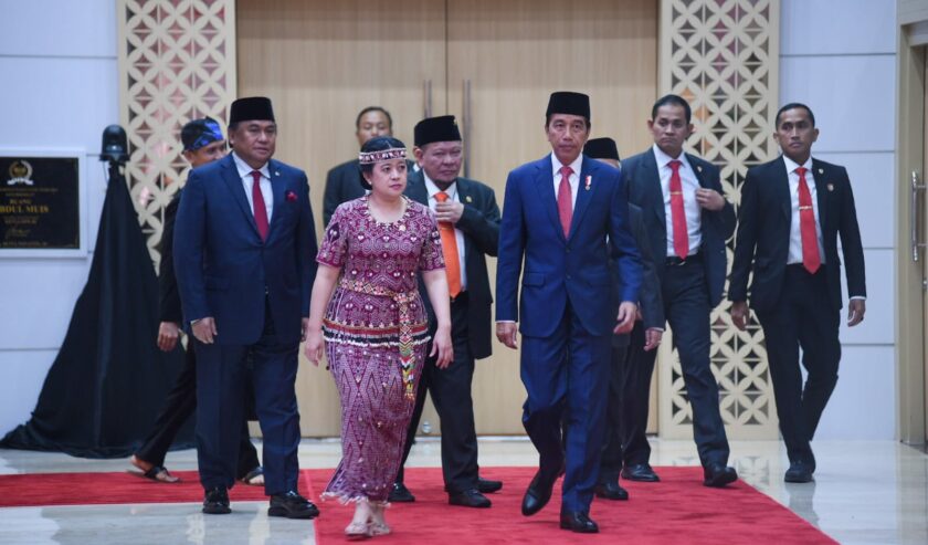 Jokowi Presiden dan Ma’ruf Amin Wapres hadir untuk menyampaikan secara langsung RUU tentang APBN Tahun Anggaran 2024 beserta Nota Keuangan dan dokumen pendukungnya kepada DPR.