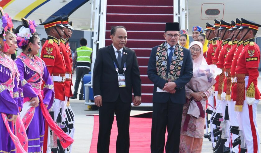 Setelah itu, secara berurutan, tampak tiba di Indonesia yaitu Hun Manet PM Kamboja, Sonexay Siphandone PM Laos, Anwar Ibrahim PM Malaysia, Hassanal Bolkiah Sultan Brunei Darussalam, Lee Hsien Loong PM Singapura, Mohammed Shahabuddin Presiden Bangladesh, Ferdinand Marcos Jr dan Presiden Filipina. yang datang beserta pendamping masing-masing.
