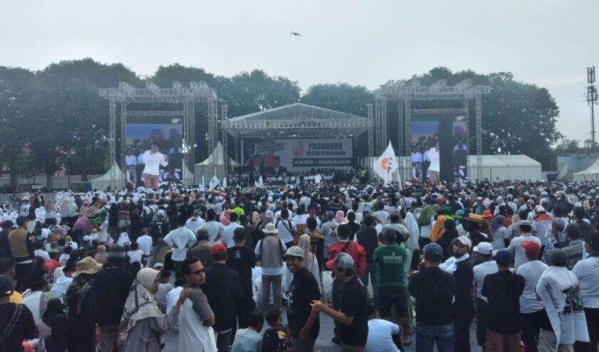 Suasana kampanye akbar pasangan Anies-Muhaimin di Stadion Untung Suropati, Pasuruan, Jawa Timur, Jumat (9/2/2024). Foto: Antara