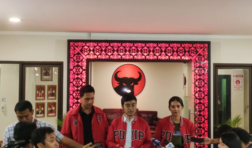 Aryo Seno Bagaskoro Politisi muda PDIP saat memberikan keterangan pers seputar HUT ke-51 PDIP di sekolah partai PDIP, Lenteng Agung, Jakarta Selatan, Selasa (9/1/2024). Foto : Faiz Fadjarudin suarasurabaya.net