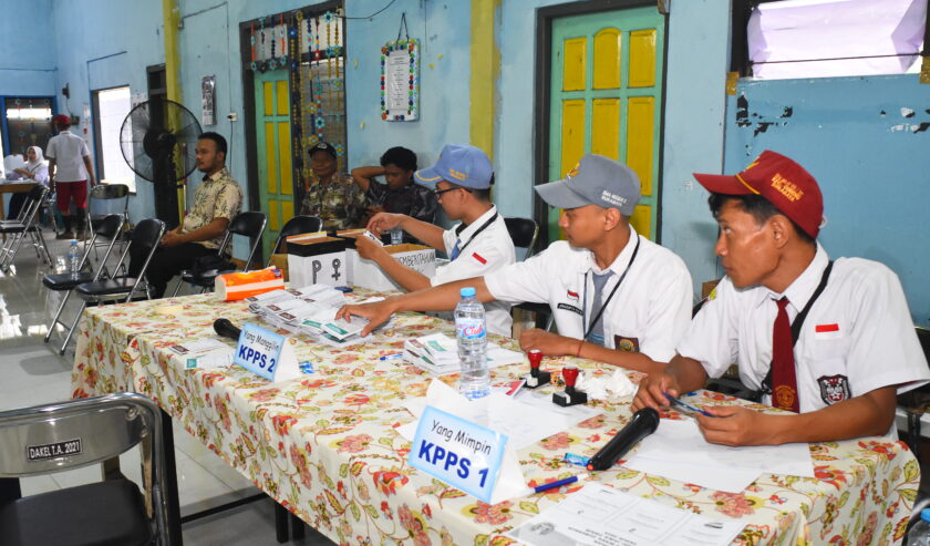Tempat Pemungutan Suara (TPS) 17 Mojo, Gubeng, Surabaya memiliki suasana yang berbeda dari TPS lainnya. Petugas Kelompok Penyelenggara Pemungutan Suara (KPPS) tampil dengan kostum unik dengan menggunakan seragam sekolah pada pilkada 2024, Rabu (27/11/2024)