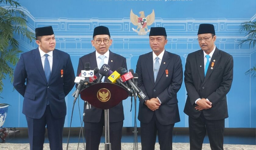 Fadli Zon Menteri Kebudayaan (dua dari kiri) memberikan keterangan terkait Pahlawan Nasional, Senin (10/11/2025), di Kompleks Istana Kepresidenan Jakarta. Foto: Farid suarasurabaya.net