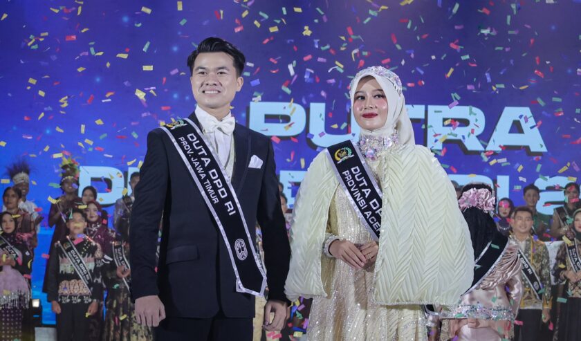 Ahmad Farezi dari Jawa Timur (kiri) dan Irhamni Malika dari Aceh berhasil meraih gelar Duta DPD RI 2025, Senin (3/11/2025). Foto: istimewa