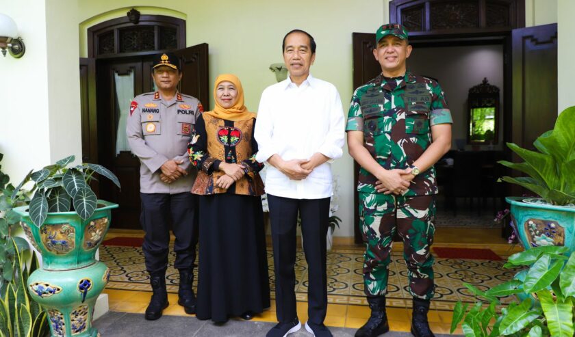Khofifah mengatakan, pertemuannya bersama Kapolda Jatim dan Pangdam V Brawijaya sebagai bentuk silaturahim halalbihalal dengan Jokowi.