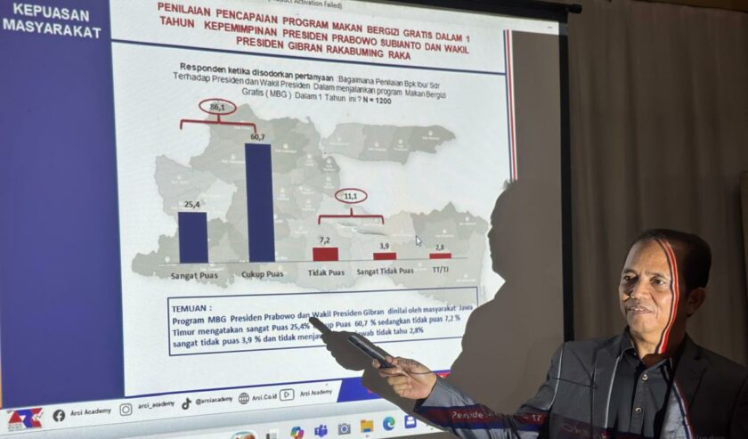 Lembaga survei Accurate Research and Consulting Indonesia (ARCI) merilis kepuasan warga Jawa Timur terhadap satu tahun pemerintahan Prabowo Subianto-Gibran Rakabuming Raka Presiden dan Wakil Presiden RI.