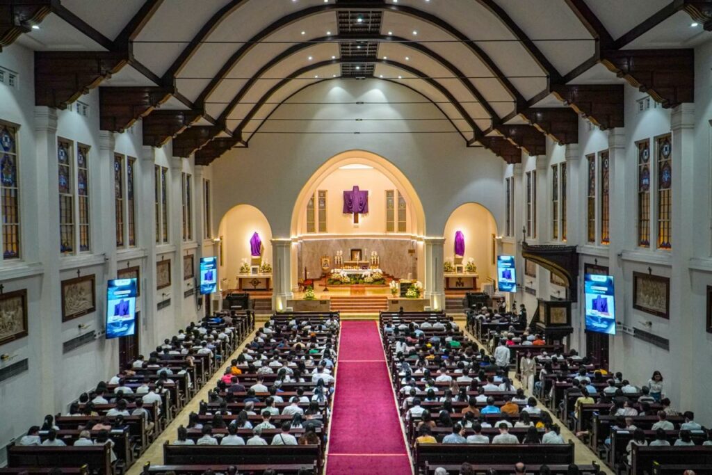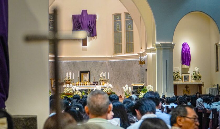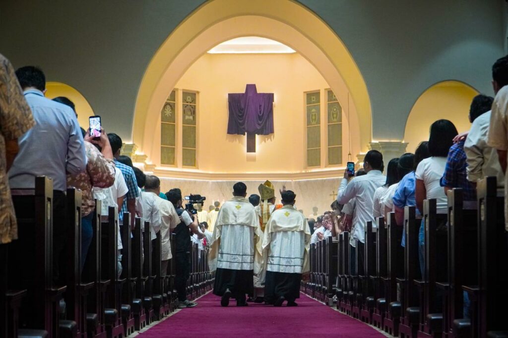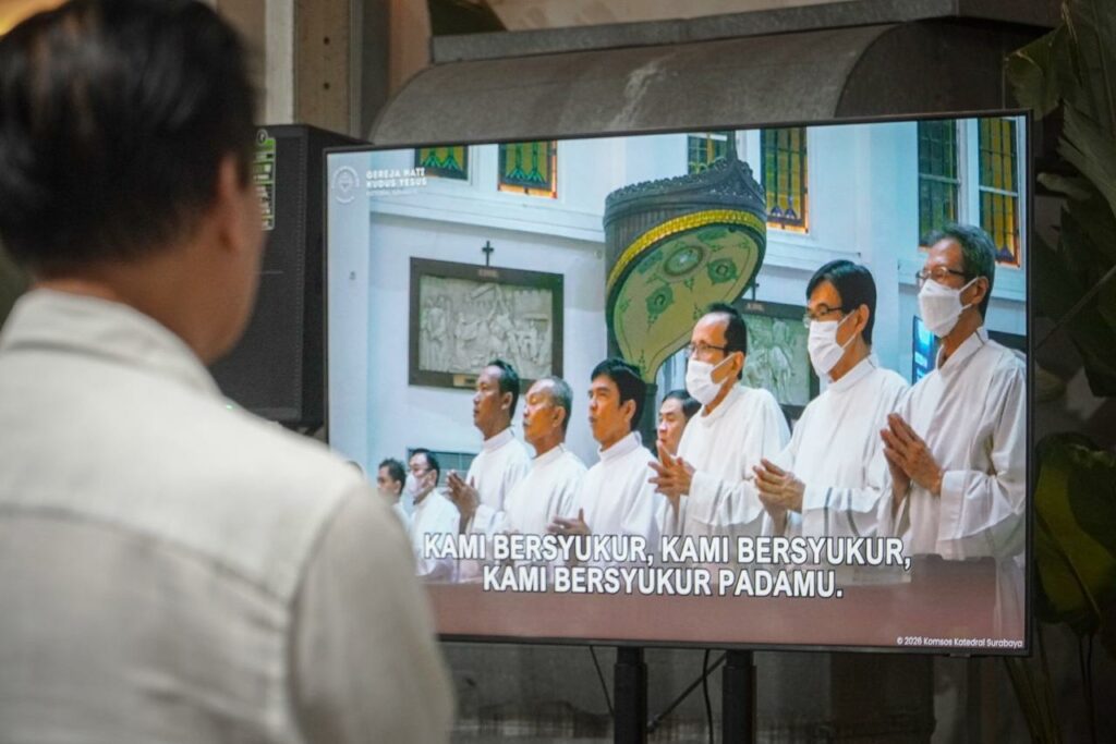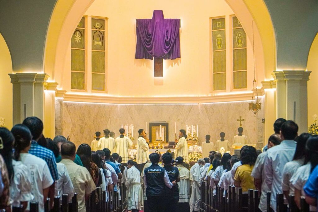 Ibadah Kamis Putih di Gereja Katedral Hati Kudus Yesus (HKY) Surabaya berlangsung khidmat dengan dihadiri 3.000 lebih jemaat yang sudah memadati gereja sejak sore hari, Kamis (2/4/2026).