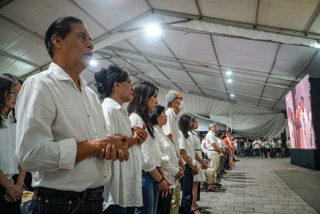 Pantauan suarasurabaya.net, ribuan jemaat yang mayoritas berbusana putih mulai memadati area gereja sejak pukul 15.00 WIB. Hampir seluruh area pun sudah penuh sebelum proses ibadah dimulai.