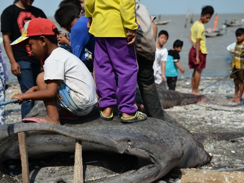 Hiu paus yang biasa disebut oleh masyarakat sekitar sebagai Hiu Tutul kembali ditemukan oleh nelayan Bulak Cumpat, Minggu (25/10/2015) pagi. Sampai saat ini, hiu yang termasuk satwa dilindungi atau tergolong langka ini menjadi tontonan.