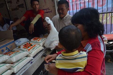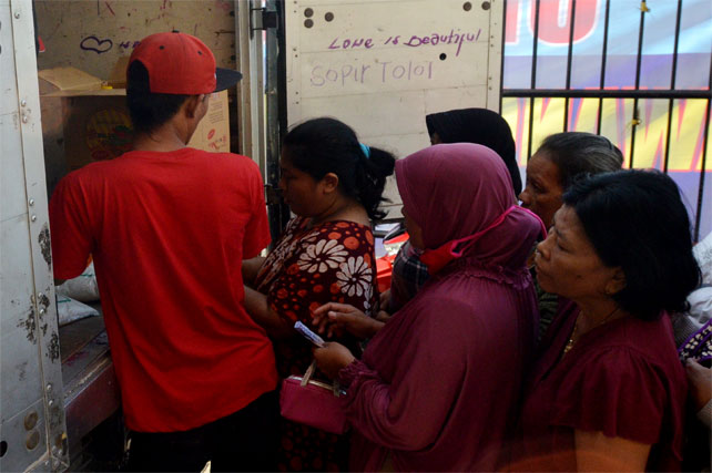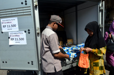 Meringankan daya beli masyarakat, Sabtu (20/6/2015) Bulog Jawa Timur gelar Operasi Pasar Sembako didepan DTC Wonokromo, Surabaya.