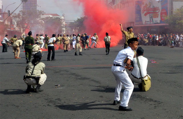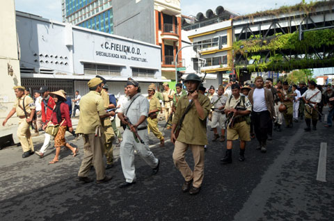 Lebih dari 300 personel yang terdiri dari pelajar, mahasiswa, komunitas dan tentara, Minggu (5/11/2017) menggelar Parade Surabaya Juang 2017. Diberangkatkan dari Tugu Pahlawan di kawasan Jl. Pahlawan, kemudian bergerak menuju Kramat Gantung, Gemblongan, Tunjungan, Gubernur Suryo, Panglima Sudirman, Raya Darmo menuju garis akhir Taman Bungkul. Pada sejumlah pemberhentian, parade ditandai dengan aksi teatrikal pertempuran yang dilakukan Arek-arek Suroboyo melawan penjajah Sekutu. Teatrikal pertempuran digelar di Jl. Pahlawan, Jl. Tunjungan depan Siola, berhenti di depan Hotel Majapahit mengikuti upacara bendera dilanjutkan ke Gubernur Suryo depan Grahadi. Inilah aksi teatrikal pertempuran yang dilakukan didepan Siola antara pejuang Arek-arek Suroboyo melawan penjajah Sekutu.