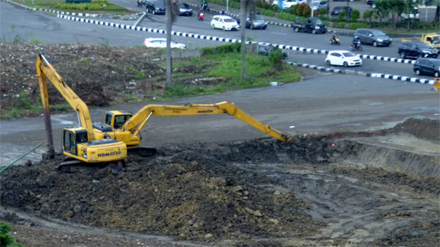 Rencana pembangunan bozem dikawasan Pakuwon Trade Center (PTC), mulai dilakukan. Di bundaran itu nantinya akan ada bozem yang diharapkan bisa menampung air disaat hujan maupun memperlancar luberan air dikawasan Pakuwon dan sekitarnya. Kamis (14/3/2019) sebuah backhoe melakukan penggalian dilahan untuk bozem tersebut.