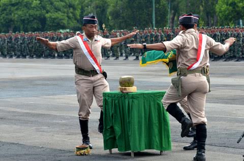 Ditandai dengan tampilnya prajurit pejuang dengan seragam khas, upacara penerimaan dan penyerahan Simbol Peleton Beranting Yudha Wastu Pramuka, Sabtu (19/12/2015) usai long march selama 3 hari dari Tuban ke Kodam V Brawijaya, tandai Hari Infanteri ke 67 tahun.