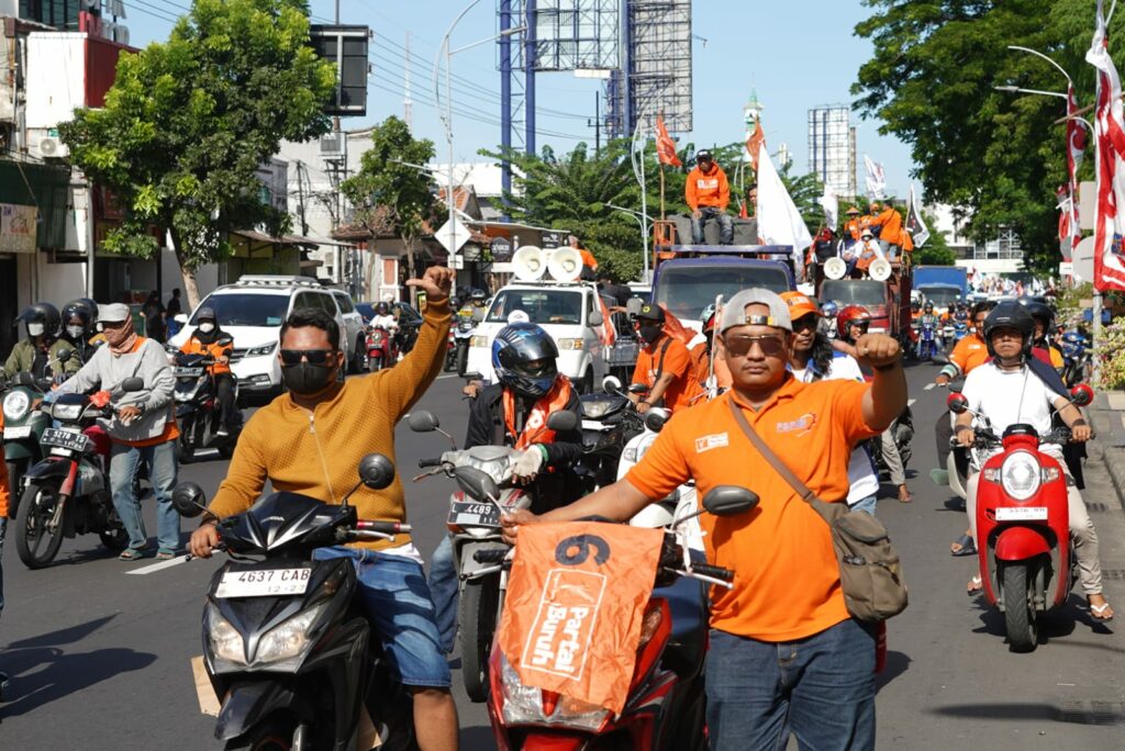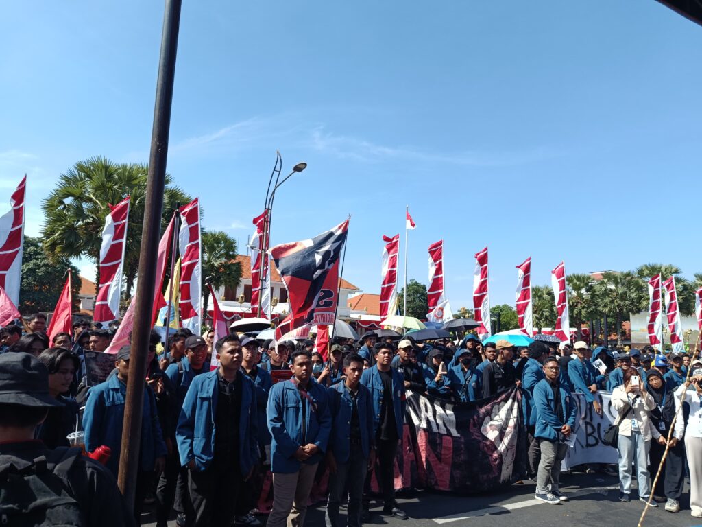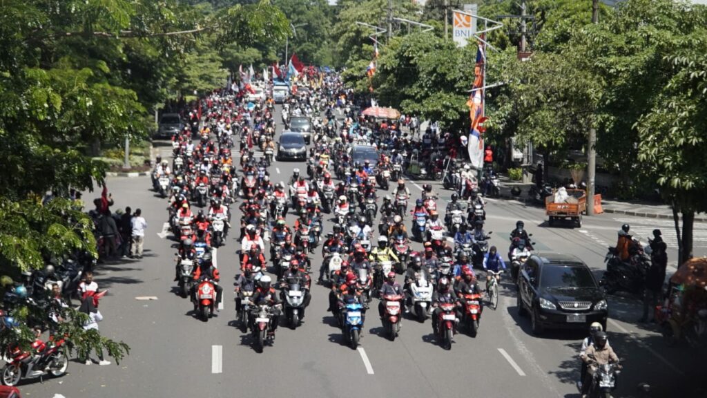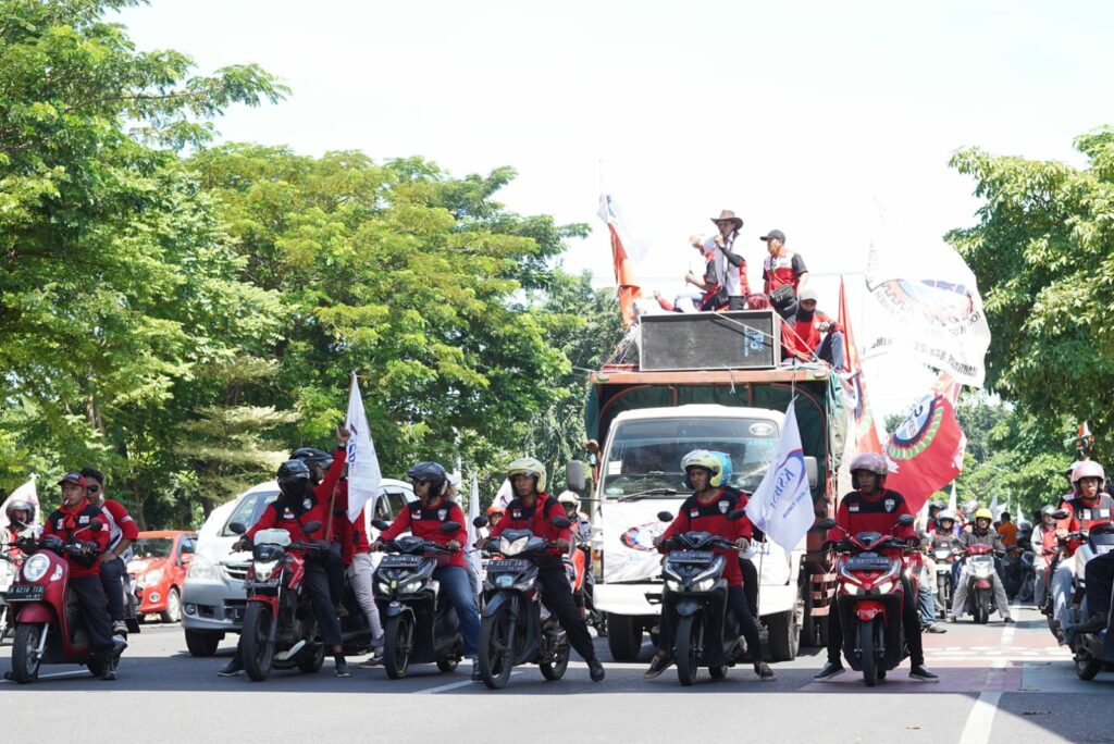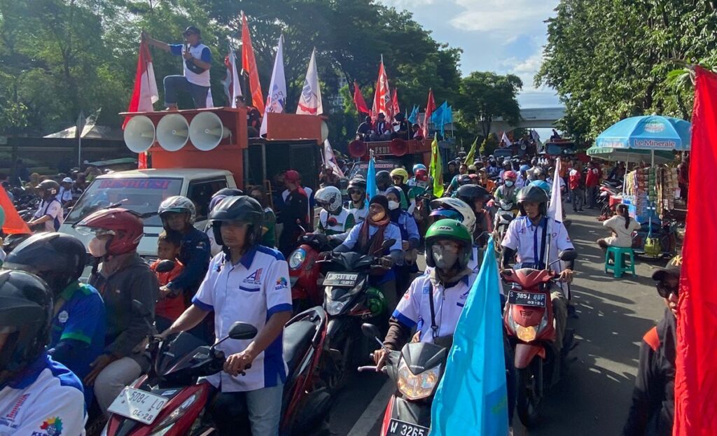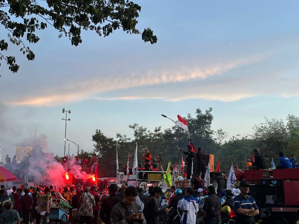 Massa berkumpul di frontage Jalan Ahmad Yani. Selanjutnya, mereka bergerak ke pusat Kota Pahlawan.