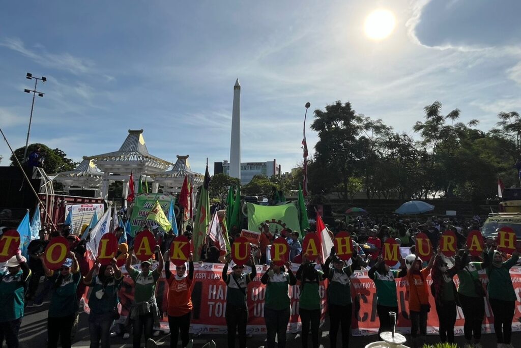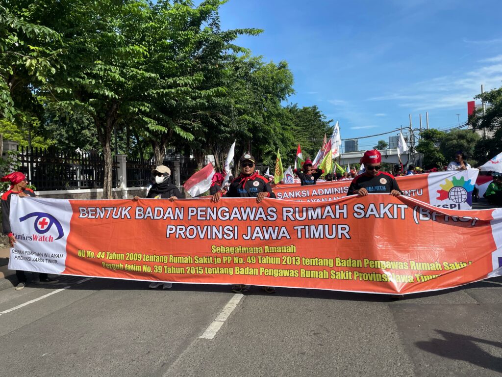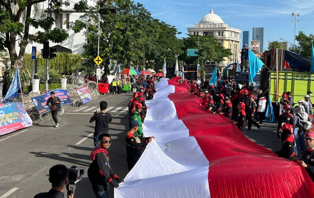 Massa aksi Hari Buruh ini berencana melakukan orasi di Kantor Gubernur Jatim, Gedung Negara Grahadi, dan di kantor DPRD Jatim.