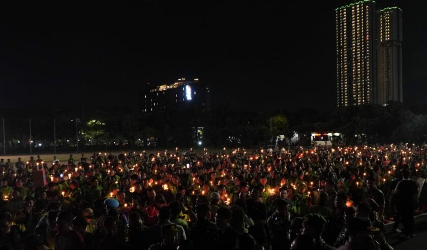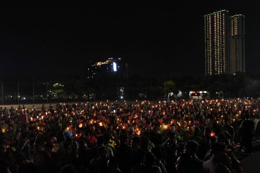 1.000 driver ojek online se-Surabaya menggelar aksi solidaritas di lapangan Mapolda Jatim, Jumat (29/8/2205) malam ini.