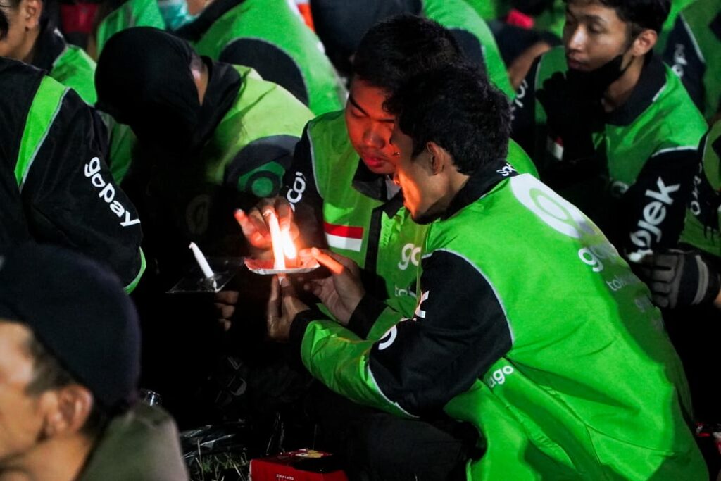 Aksi ini dilakukan untuk mengenang kepergian Affan Kurniawan driver ojol di Jakarta yang menjadi korban setelah dilindas mobil rantis Brimob, Kamis (28/8/2025) malam.