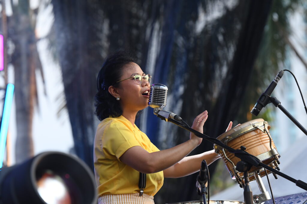 Sepuluh alunan lagu bernuansa tempo dulu dibawakan NonaRia di MLDSPOT Stage di outdoor area Grand City Mall Surabaya untuk menemani penonton Jazz Traffic Festival 2024 menghabiskan senja, Sabtu (14/9/2024).