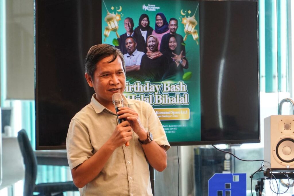 Kru Suara Surabaya yang dirayakan pada hari Selasa (31/3/2026) ada Iping Supingah, Hery Setiyoko, Shelvi Laurentya, Yohanes Makani, Rizaldi Aldama, Rara Prawitasari, dan Dimas Ayu.
