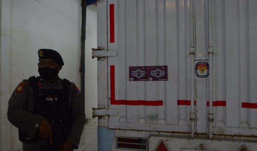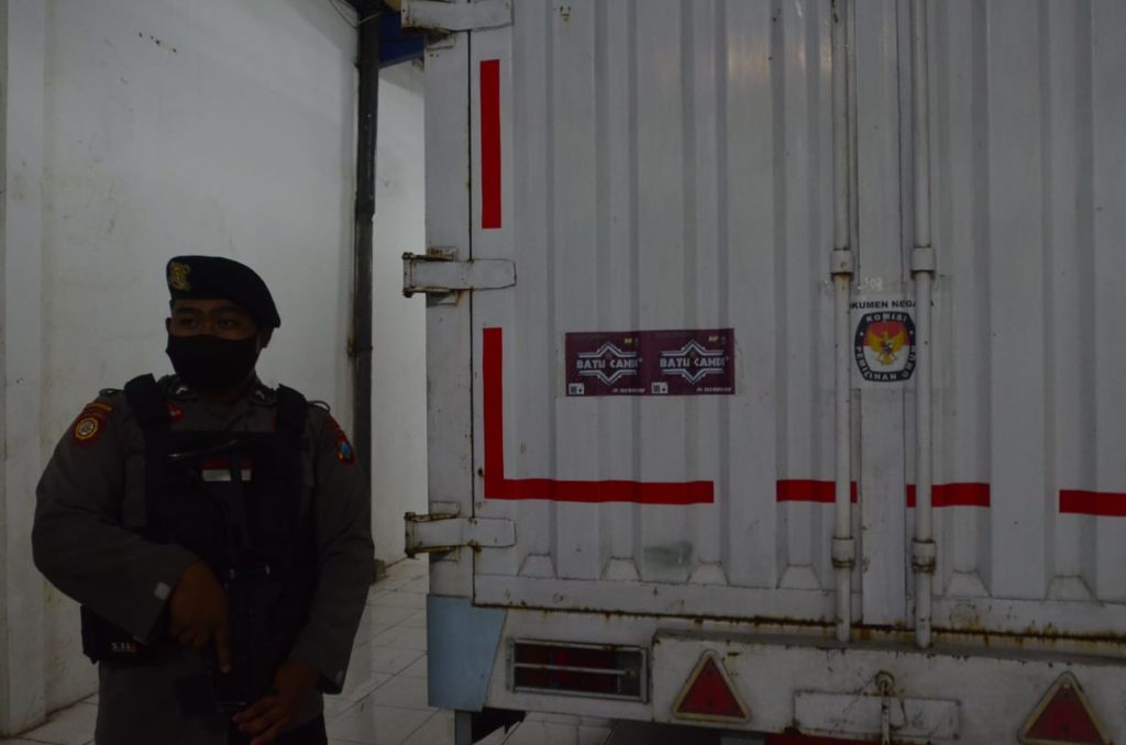 Sebanyak 2.143.675 surat suara Pilkada Surabaya 2020 mulai berdatangan di gudang logistik di Jalan Kalilom Lor Baru II, Tanah Kali Kedinding, Kecamatan Kenjeran, Selasa (24/11/2020). Proses selanjutnya dilakukan sortir dan pelipatan. Setelah itu kemudian dicek sesuai kebutuhan setiap Kecamatan dan didistribusikan ke Kecamatan paling tidak sampai 29 November.