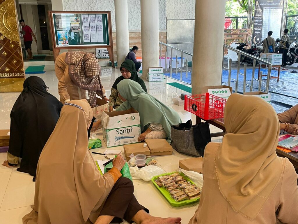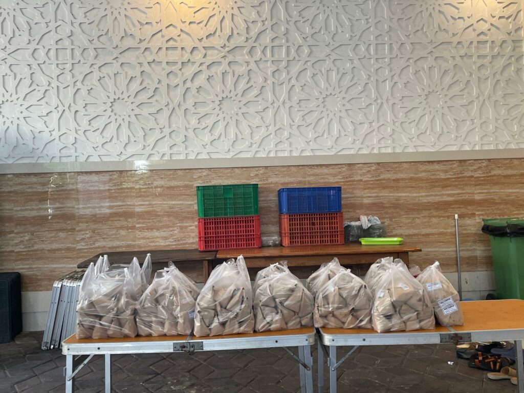 Masjid Ash-Shoobirin yang berada di Jalan Raya Rungkut Mapan, Gunung Anyar, Surabaya, menyiapkan ratusan bungkus nasi untuk driver ojek online (ojol) dan jemaah masjid di bulan Ramadan. Seperti terpantau suarasurabaya.net pada Senin (18/3/2024).