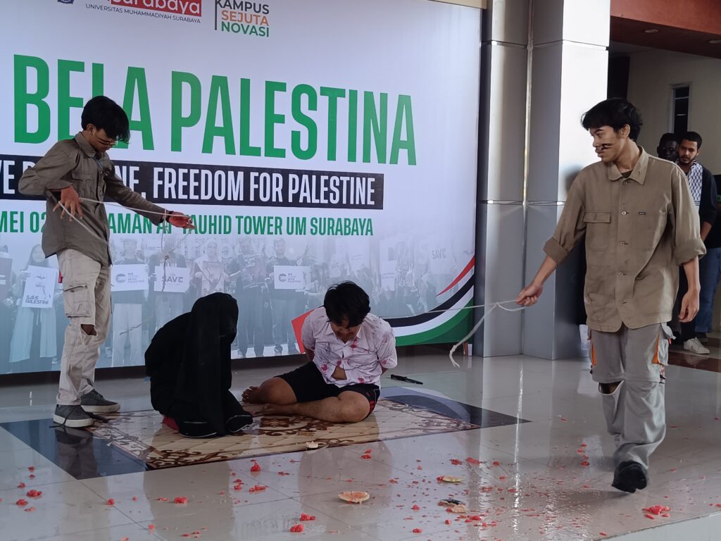 Di Universitas Muhammadiyah (UM) Surabaya, aksi tersebut digelar dengan melakukan teater pembebasan dan pembacaan puisi berantai di halaman At-Tauhid Tower UM Surabaya.