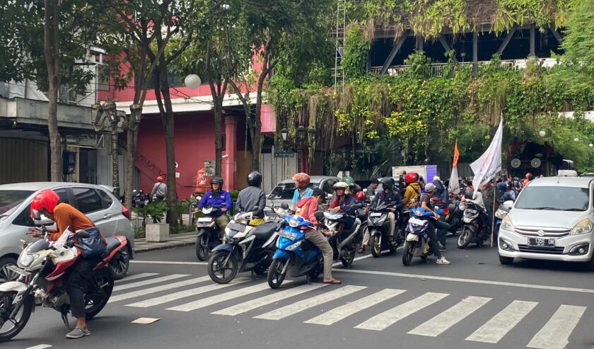 Salah satunya di simpang empat Jalan Bubutan. Waktu di depan simpang empat dekat Tugu Pahlawan, massa demo sempat bersitegang dengan petugas kepolisian. Hingga saat ini masih belum jelas ke arah mana titik aksi pendemo kali ini.