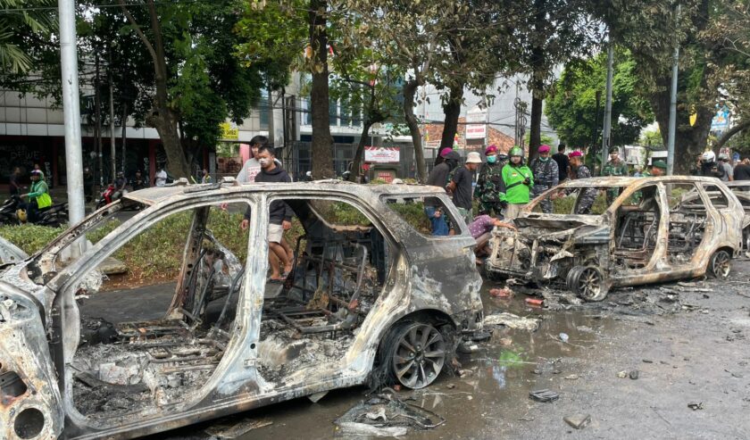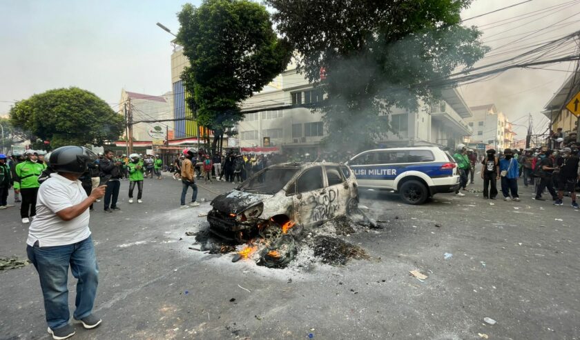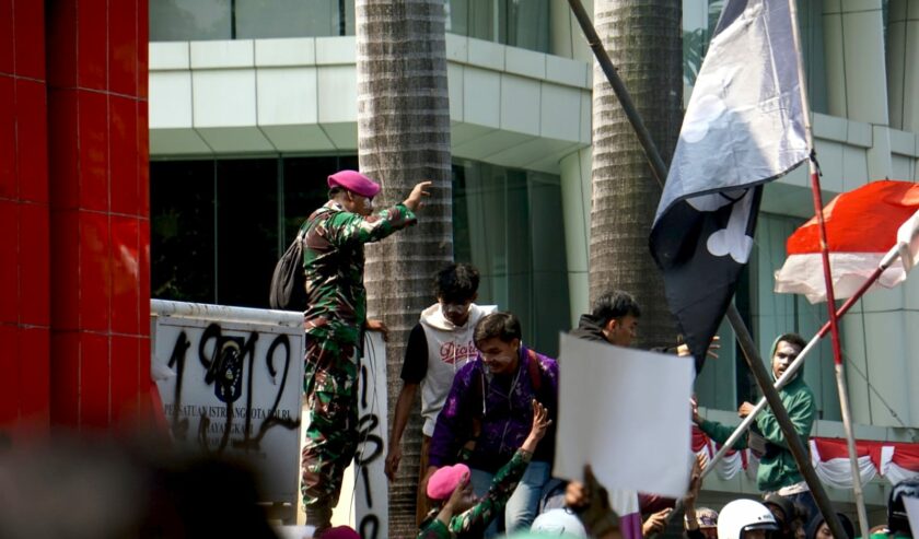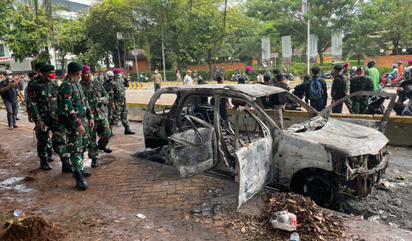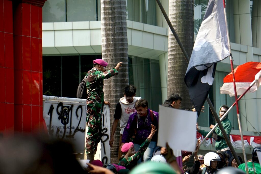 Aparat TNI yang sebelumnya menjaga juga terpaksa menjauh, karena menghindari gas air mata.