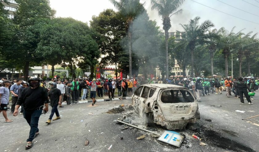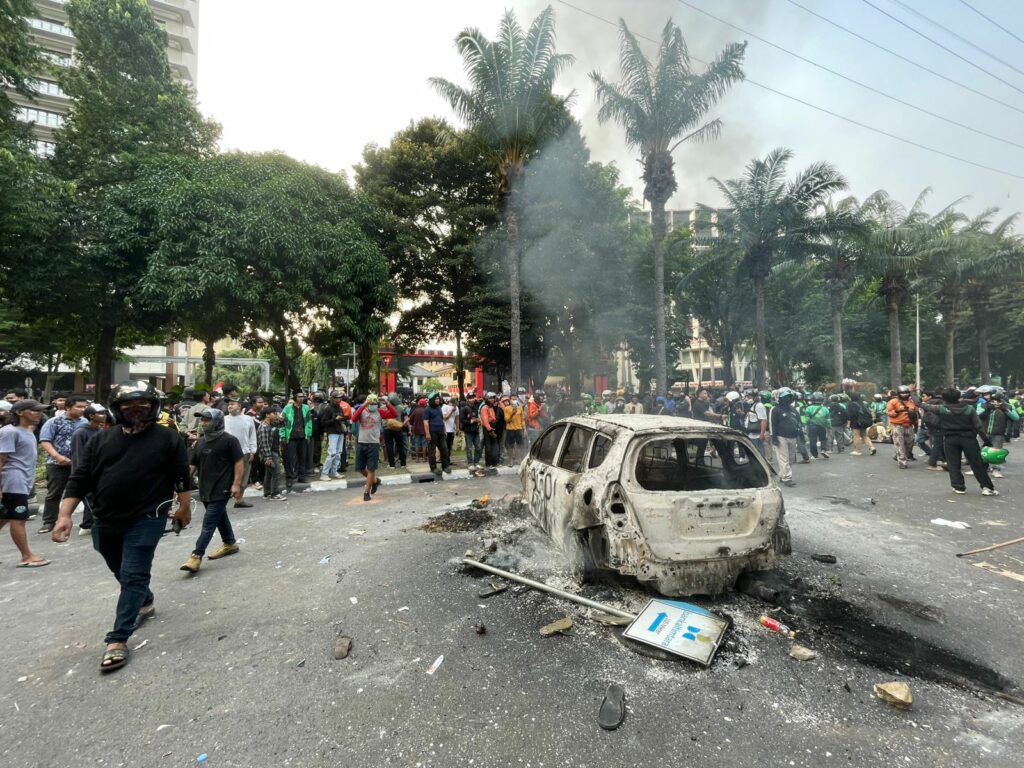 Aksi demonstrasi kembali terjadi di Jakarta, kali ini dilakukan oleh driver ojek online (ojol) dan masyarakat di depan Mako Brimob Polda jaya, pada Jumat (29/8/2025).