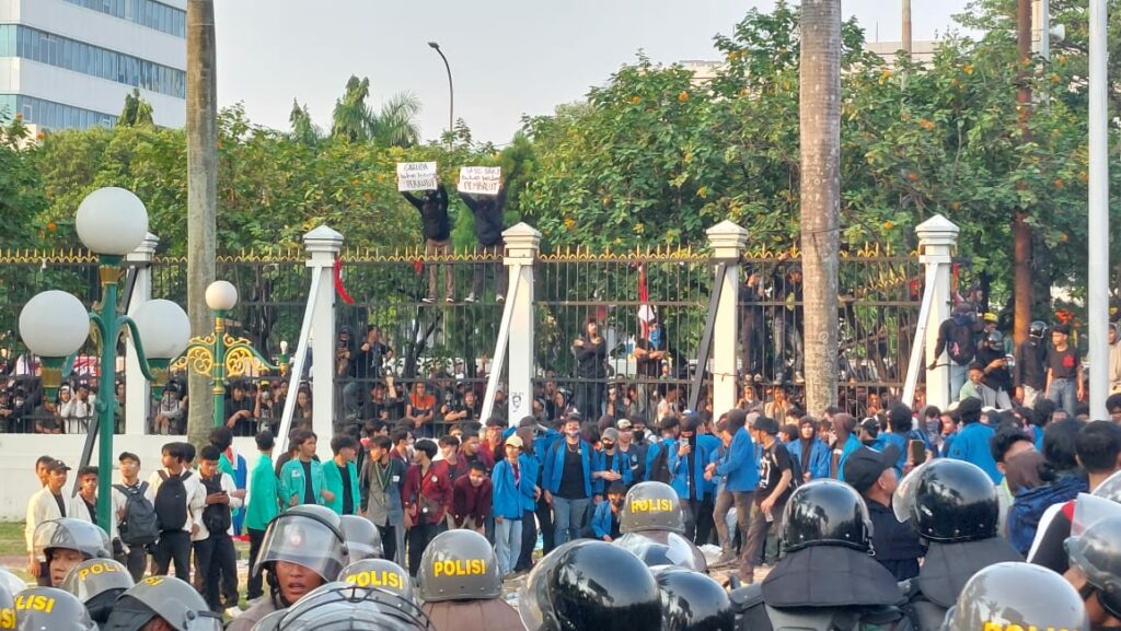 Seribuan orang dari berbagai kelompok dan organisasi, hari ini, Kamis (22/8/2024), berkumpul di depan Pintu Gerbang DPR RI sebelah utara yang menghadap Jalan Gatot Subroto, Jakarta Selatan.