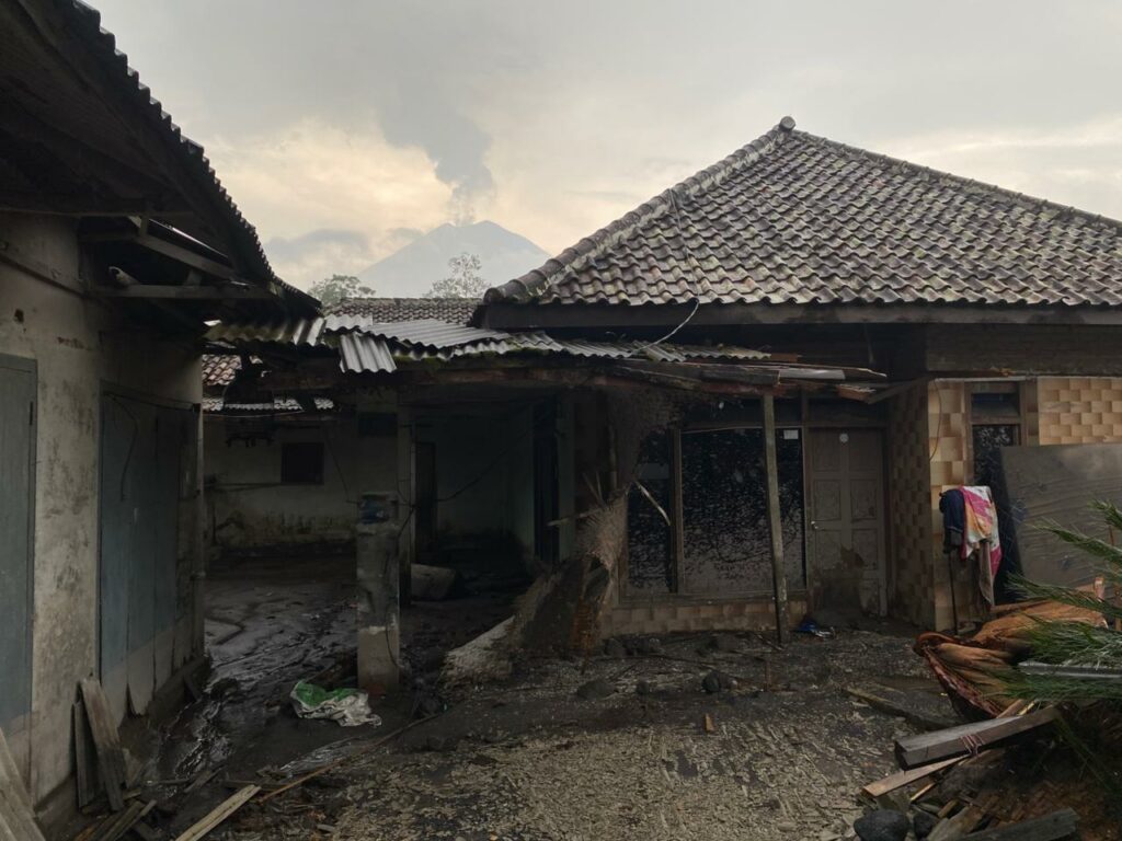 Material vulaknik menumpuk hampir setinggi atap rumah yang mengakibatkan kerusakan di bagian atap, dinding dan pintu depan. Selain itu perkebunan dan hewan ternak warga juga ikut terdampak.