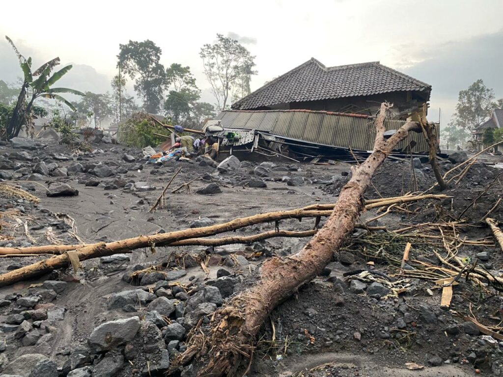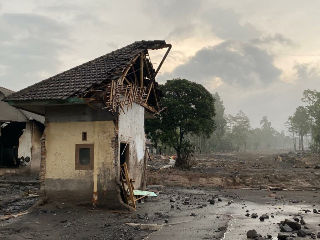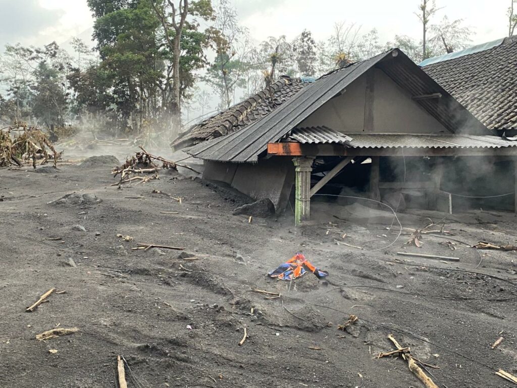 Kerusakan parah terjadi di Dusun Gumukmas Desa Supiturang, Kecamatan Pronojiwo, Kabupaten Lumajang, Jawq Timur setelah diterjang awan panas guguran Gunung Semeru pada Rabu (19/11/2025) kemarin.