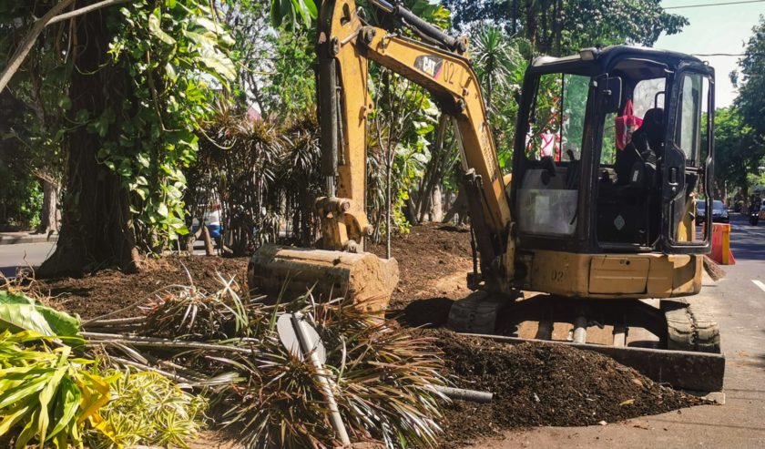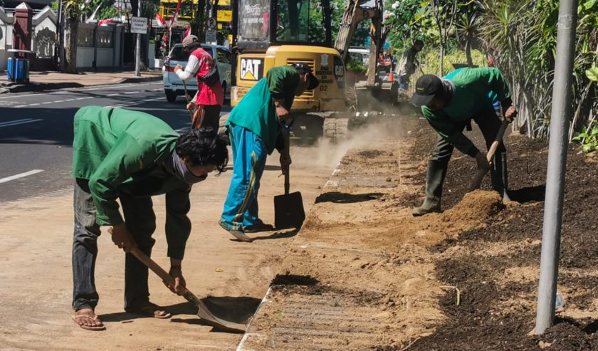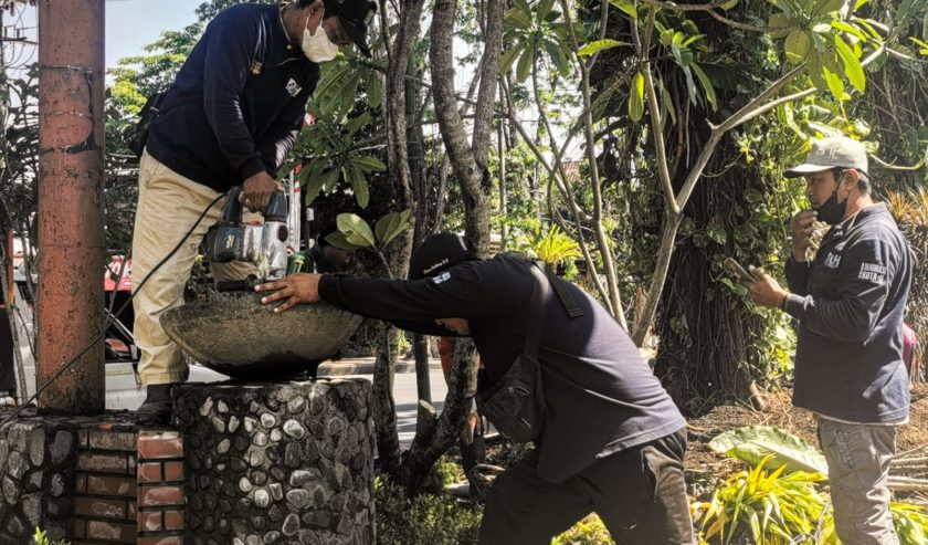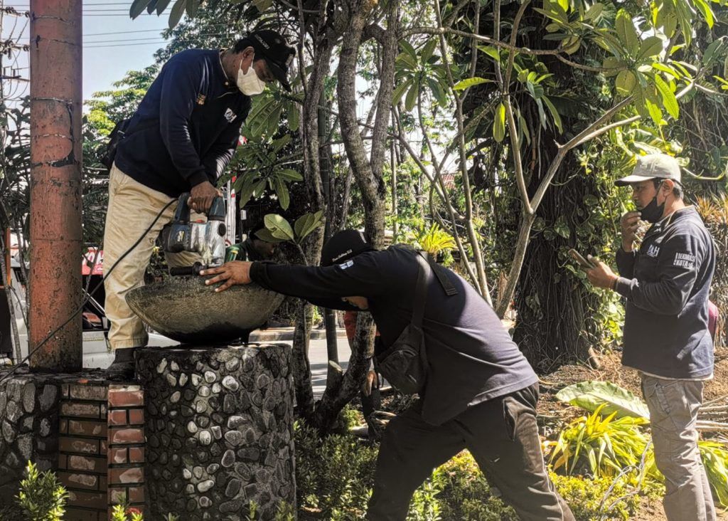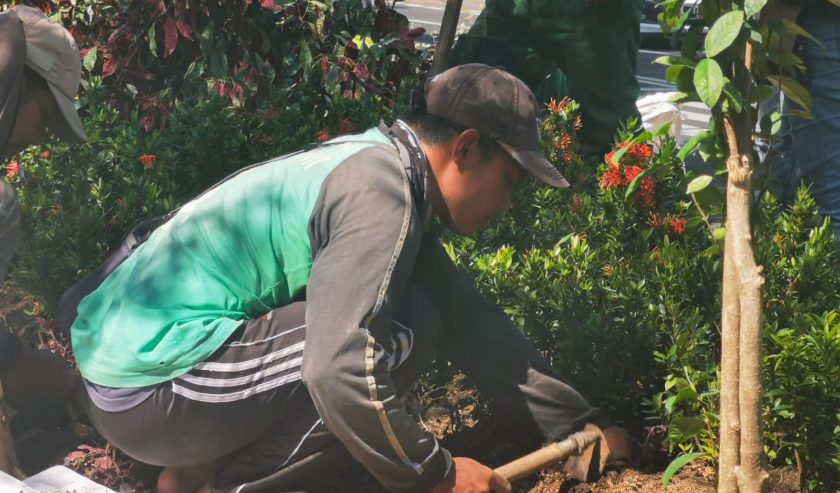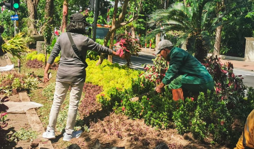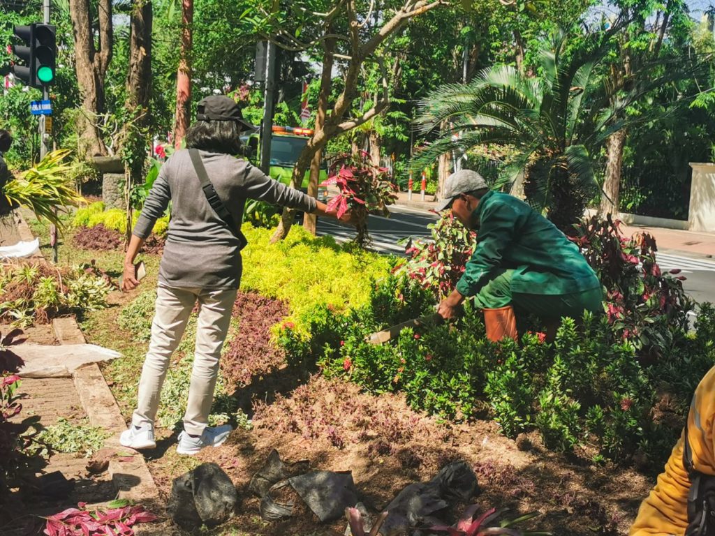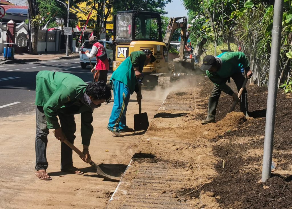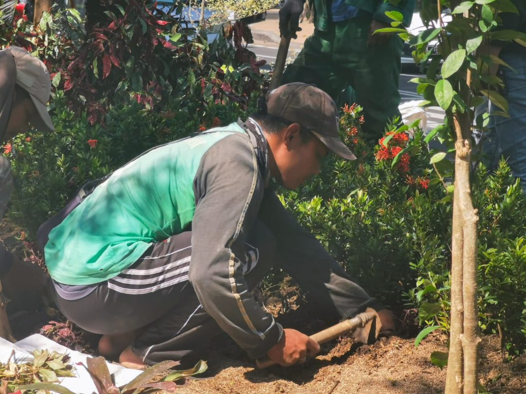 Dinas Lingkungan Hidup (DLH) Kota Surabaya laksanakan pembenahan taman di depan Taman Bungkul Surabaya pada Jumat (19/8/2022) sejak pukul 06.00 WIB.