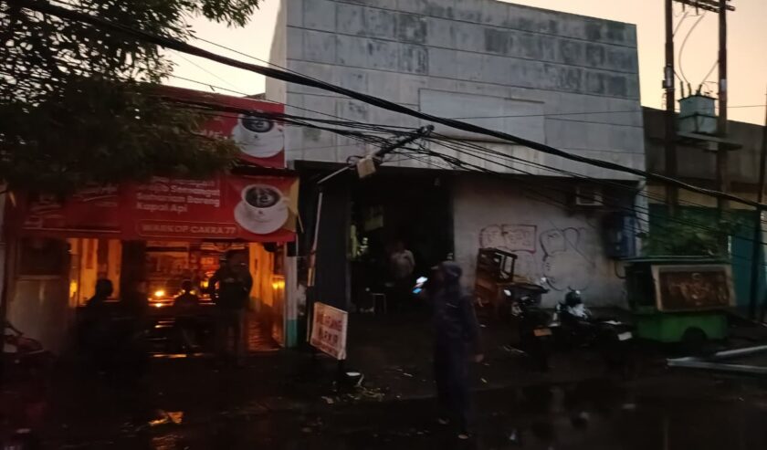 Kawasan Jalan Kranggan juga mati lampu akibat tiang listrik patah saat hujan deras disertai angin kencang tersebut.