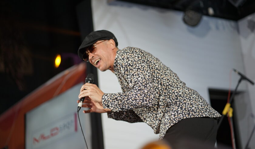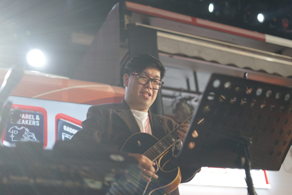 Jammie Aditya membuka penampilannya di Stage Bus Jazz Traffic Festival 2024 dengan membawakan “One is Never Too Old to Swing”, Sabtu (14/9/2024).