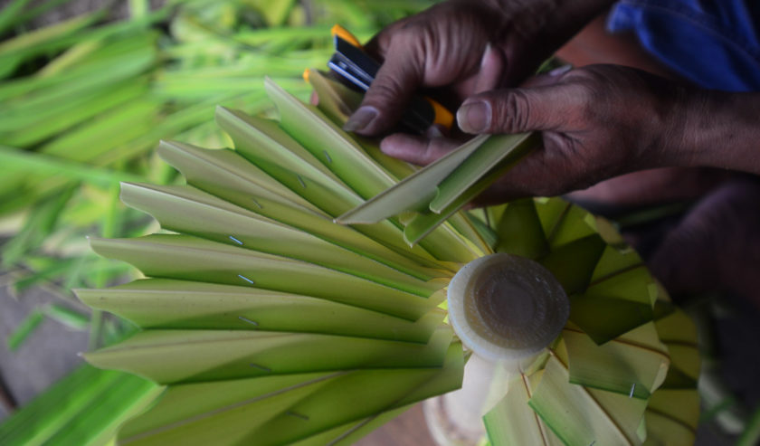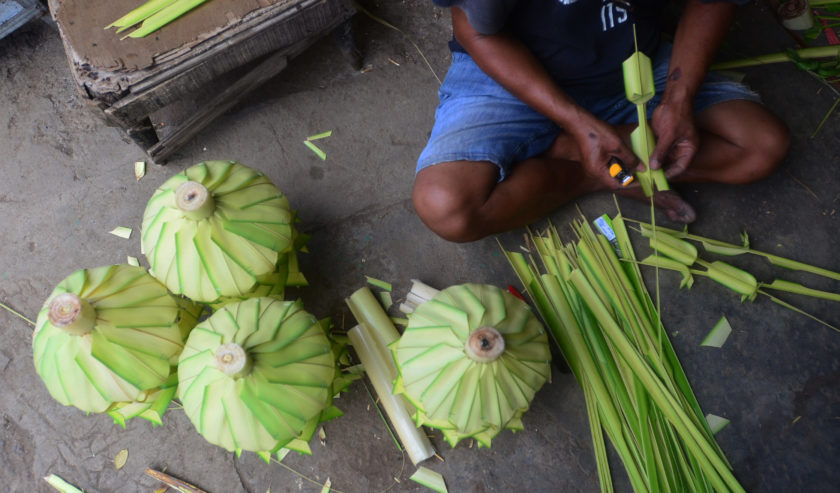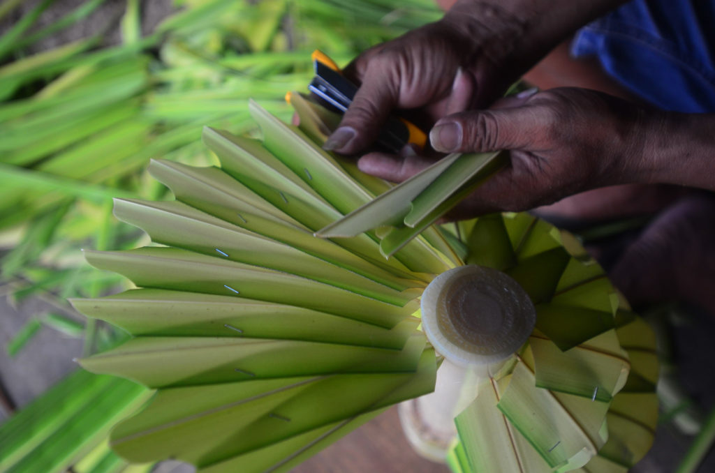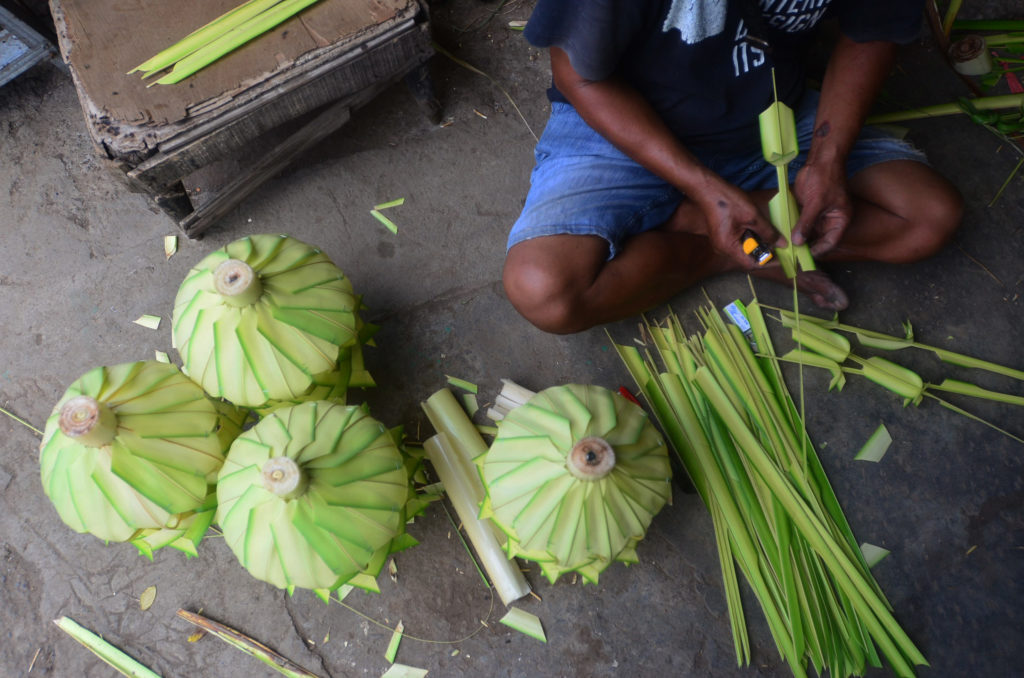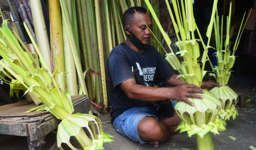 Setelah sempat berhenti total akibat tidak adanya gelaran hajatan, pembuat dekorasi dari janur kembali beraktifitas. Seperti yang terlihat di bengkel kreasi Hudi Karya di seputaran Keputran pada Kamis sore (05/11/2020). Mereka mulai aktif membut dekorasi janur dengan berdatangannya pesanan dari weding organizer untuk acara pernikahan.