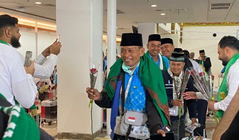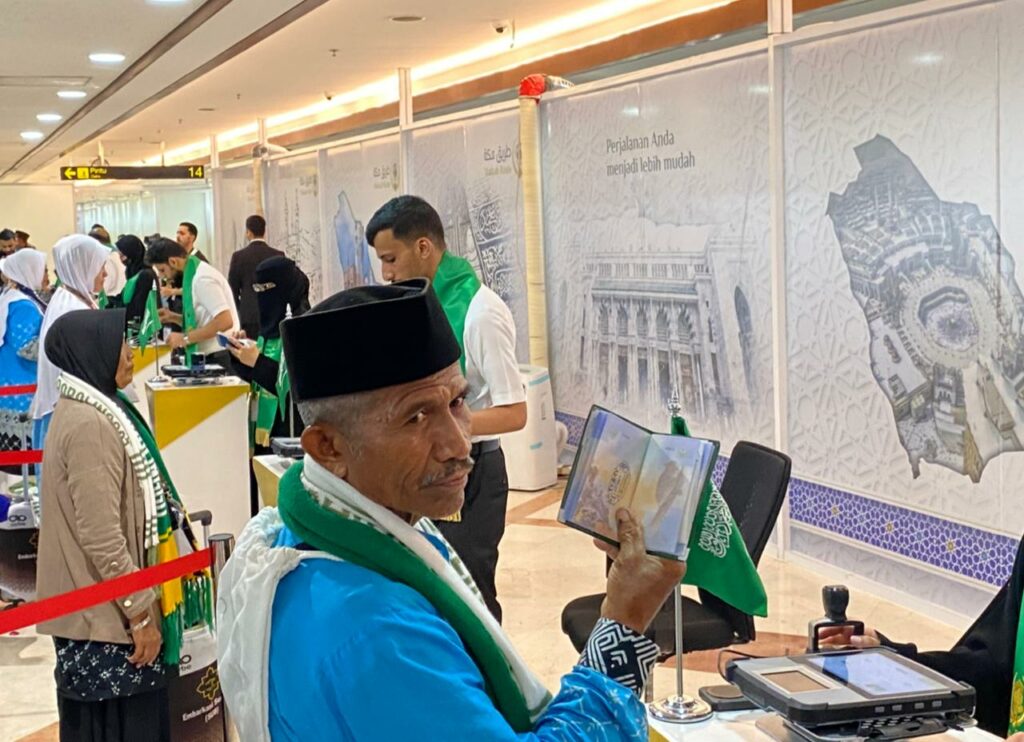 Suasana haru dan penuh antusias mewarnai ruang tunggu keberangkatan Bandara Internasional Juanda yang dipenuhi 380 jemaah haji kloter 1 Embarkasi Surabaya asal Probolinggo menuju Arab Saudi, Rabu (22/4/2026).