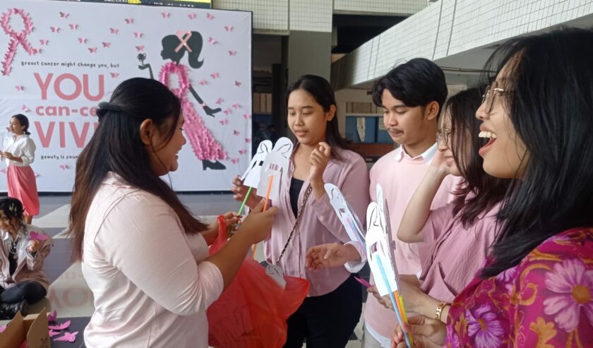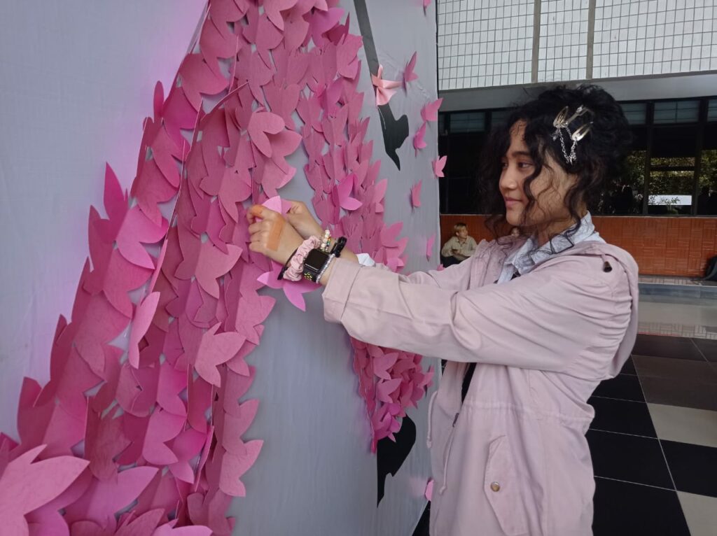 Sabrina Putri Anjani mahasiswa Fakultas Psikologi yang berinisiatif menggelar peringatan tersebut mengatakan, itu dilakukan sebagai bentuk support dan motivasi kepada penderita kanker payudara agar semangat untuk sembuh.