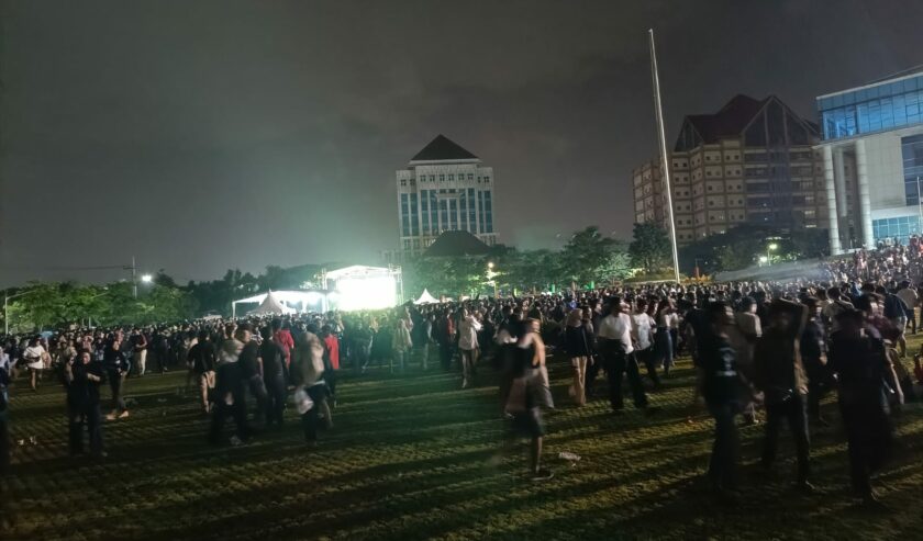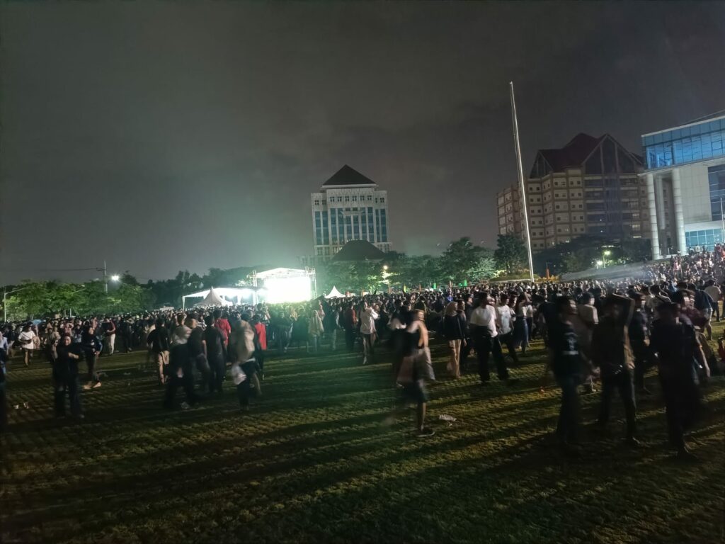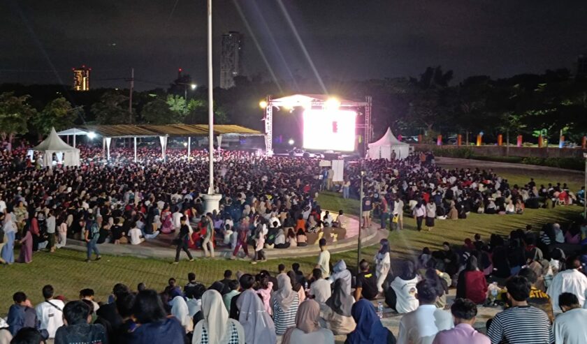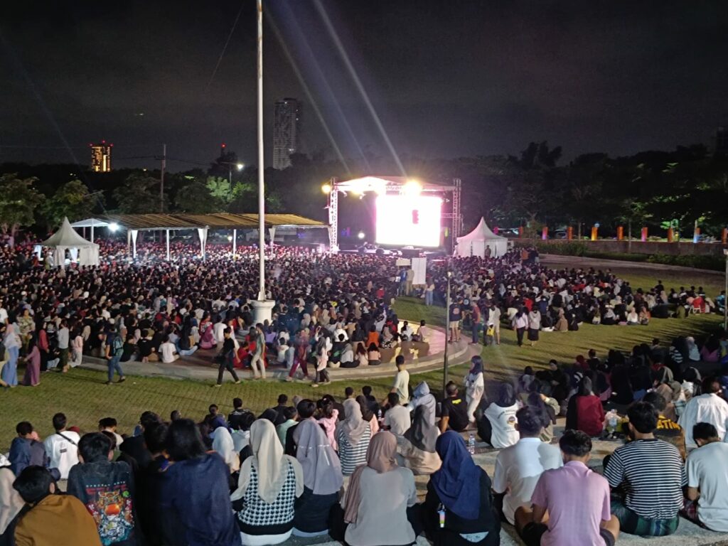 Ribuan mahasiswa dan masyarakat umum melangsungkan nonton bareng (nobar) Timnas Indonesia menghadapi Uzbekistan dalam Piala Asia U-23 di halaman Rektorat Universitas Negeri Surabaya (Unesa) Lidah Wetan, Senin (29/4/2024) malam.