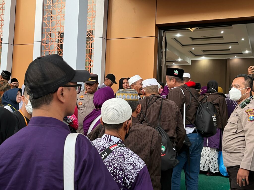 Kelompok terbang (kloter) 106 menjadi yang terakhir dari Debarkasi Surabaya yang tiba di Asrama Haji Debarkasi Surabaya pada Senin (22/7/2024) sore.