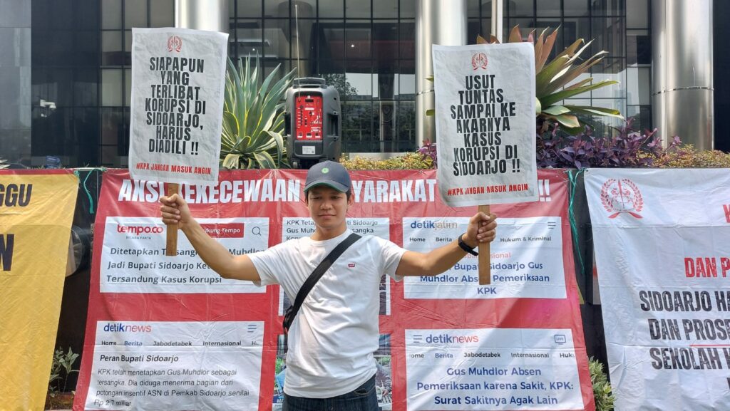 Aksi itu dilakukan bersamaan dengan proses pemeriksaan Ahmad Muhdlor Ali (Gus Muhdlor) Bupati Sidoarjo sebagai tersangka korupsi pemotongan insentif pegawai Badan Pelayanan Pajak Daerah (BPPD) Sidoarjo.