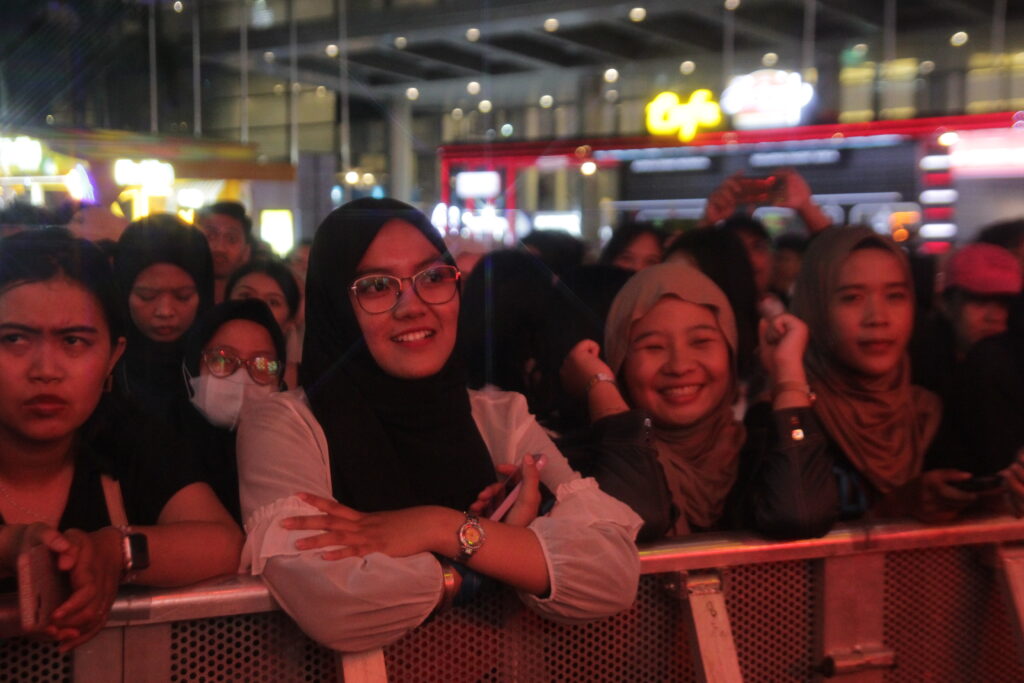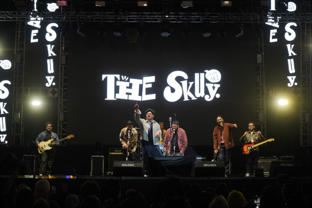 Dari barisan paling belakang, terlihat penonton begitu menikmati penampilan The Skuy setiap lagunya dengan berjoget.